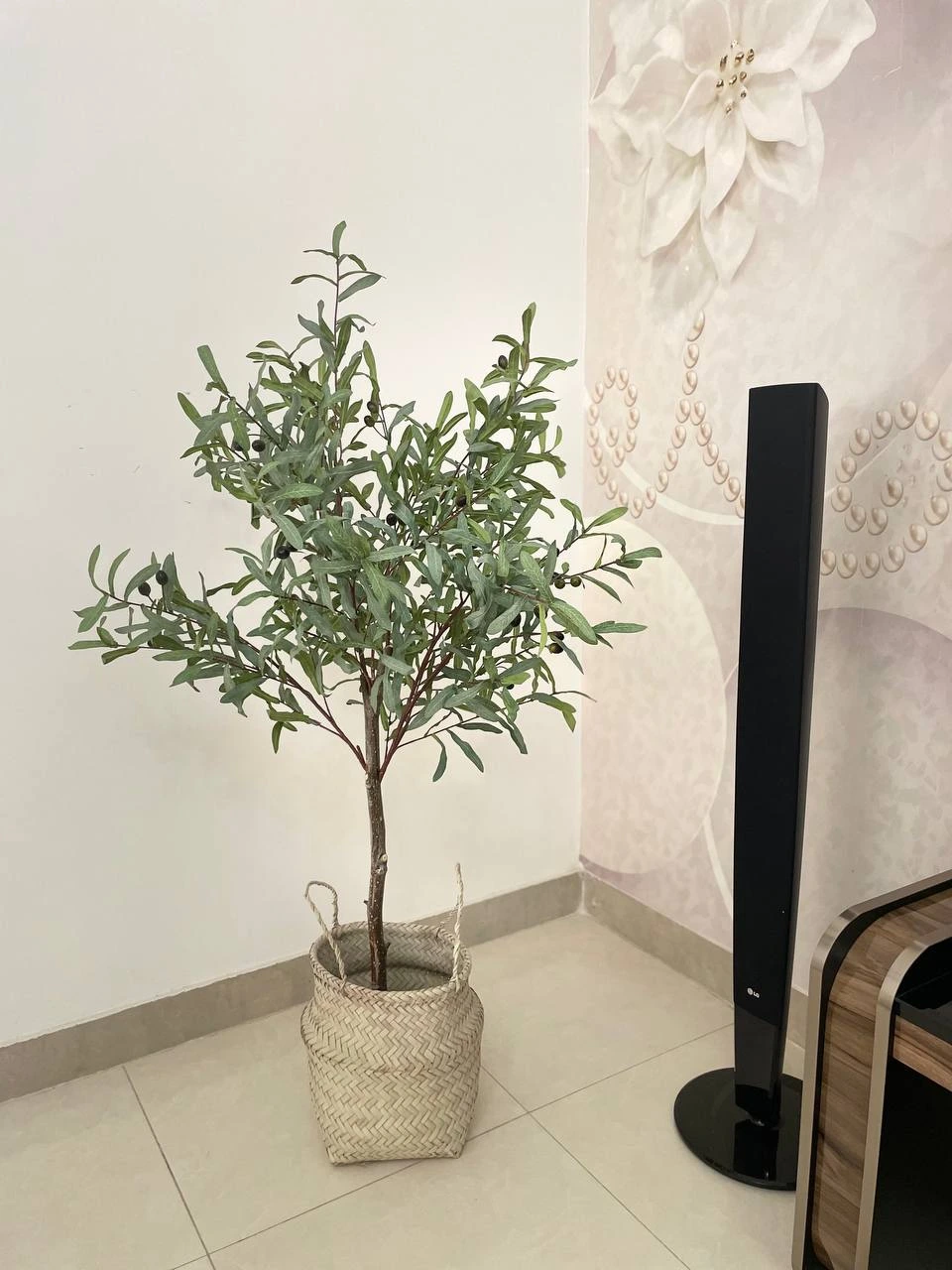 برگها وارداتی هستند و به دلیل کیفیت بالا، رنگ و بافتی طبیعی و شبیه به درخت زیتون واقعی دارند.