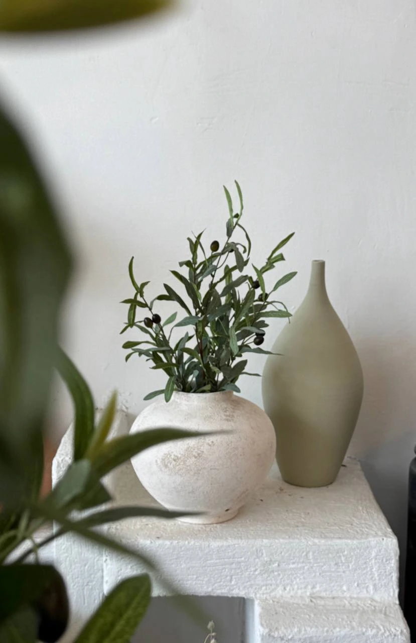 شاخههای زیتون مصنوعی میتوانند در گلدانهای زیبا روی میز، کنسول یا شومینه قرار گیرند. ترکیب برگهای نقرهای-سبز زیتون با گلدانهای سفالی یا شیشهای، ظرافت خاصی به فضا میبخشد.